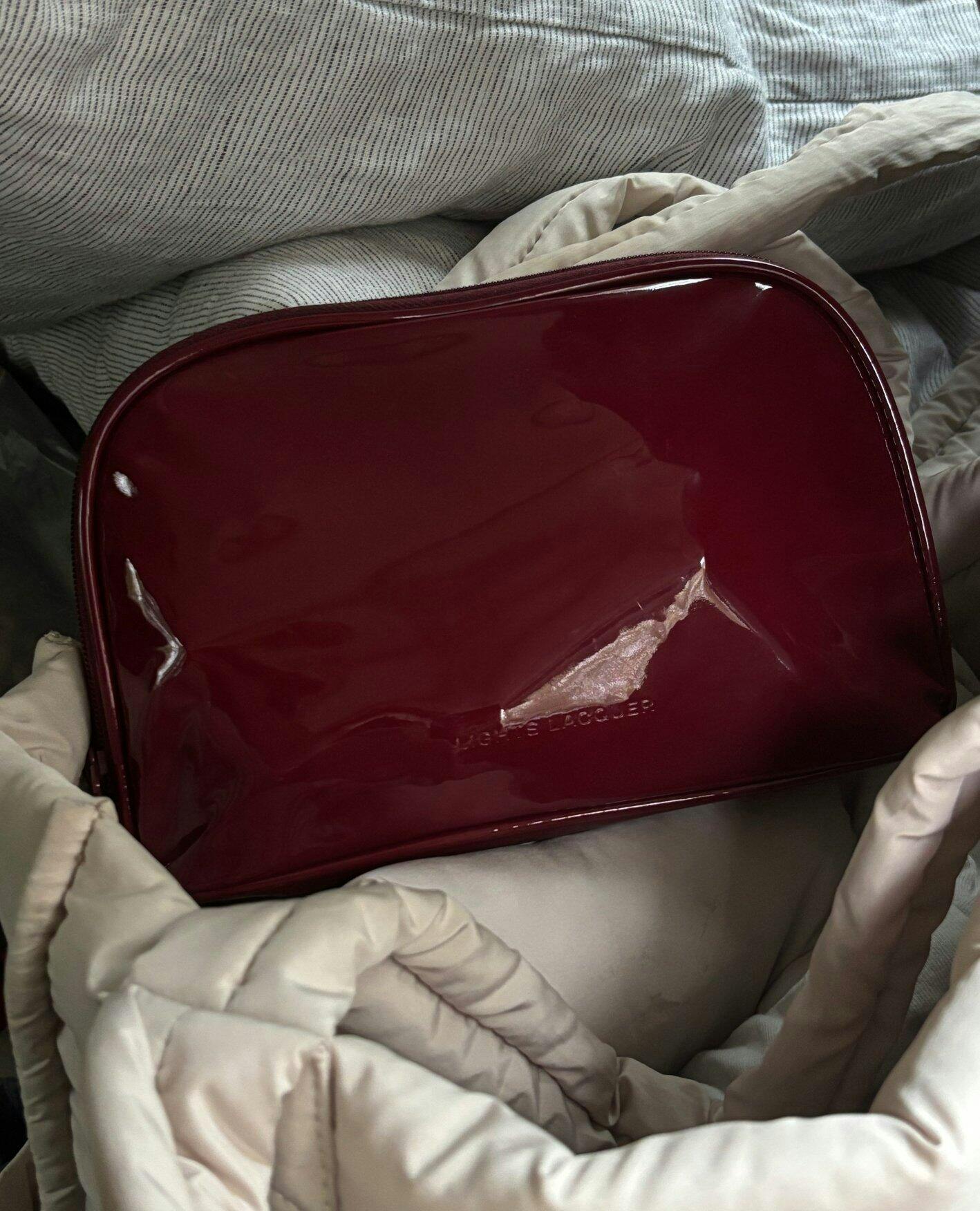This has become my everyday makeup bag! I bring it to work everyday & I get compliments on how pretty the color is anytime I pull it out! It is also a great size! I can fit my entire everyday makeup routine in this bag, and I carry the full size Tower 28 spray (another Kathleen recommendation that I love) with me as a primer spray so it’s a decent sized beauty bag! I love it!