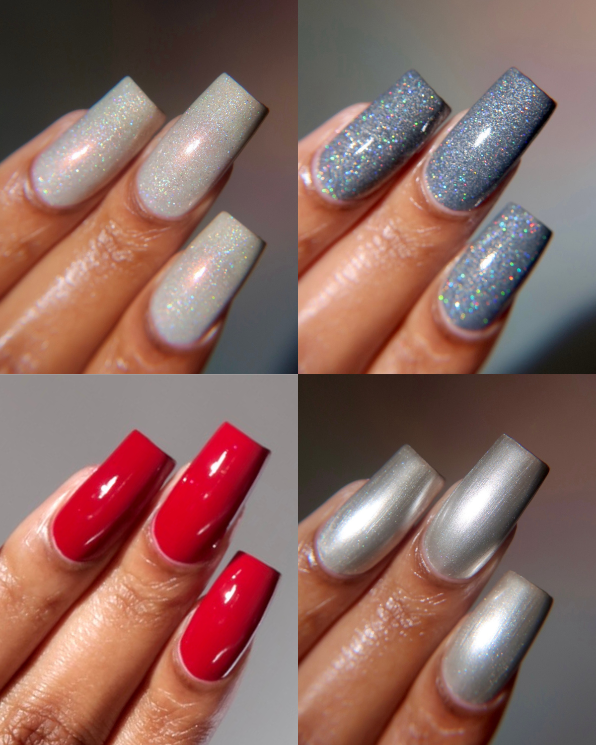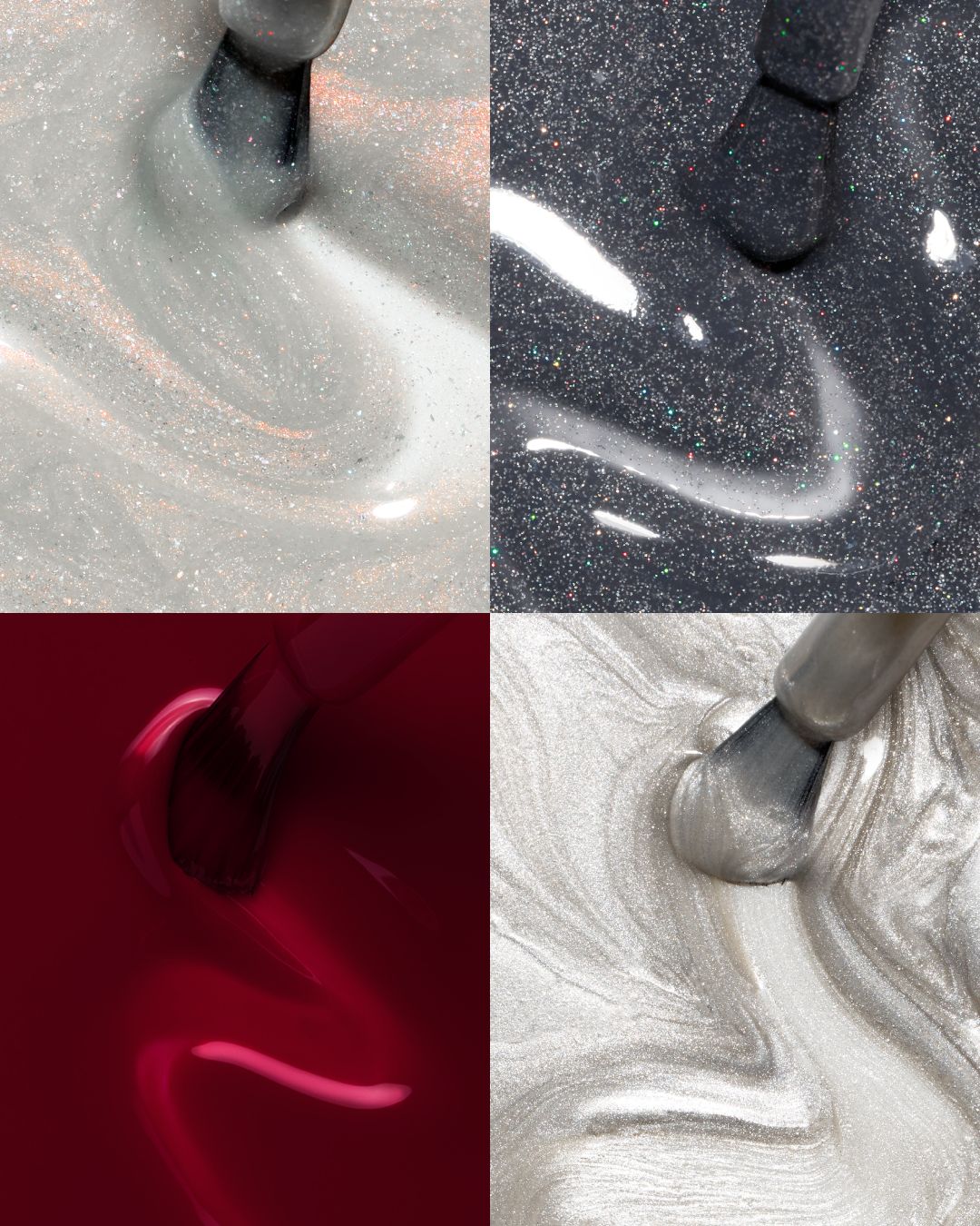 Four killer shades for dangerously good manis. Rich, glimmering, blood-deep tones channel femme fatale energy and cult-classic cinema, crafted for looks that always steal the scene.