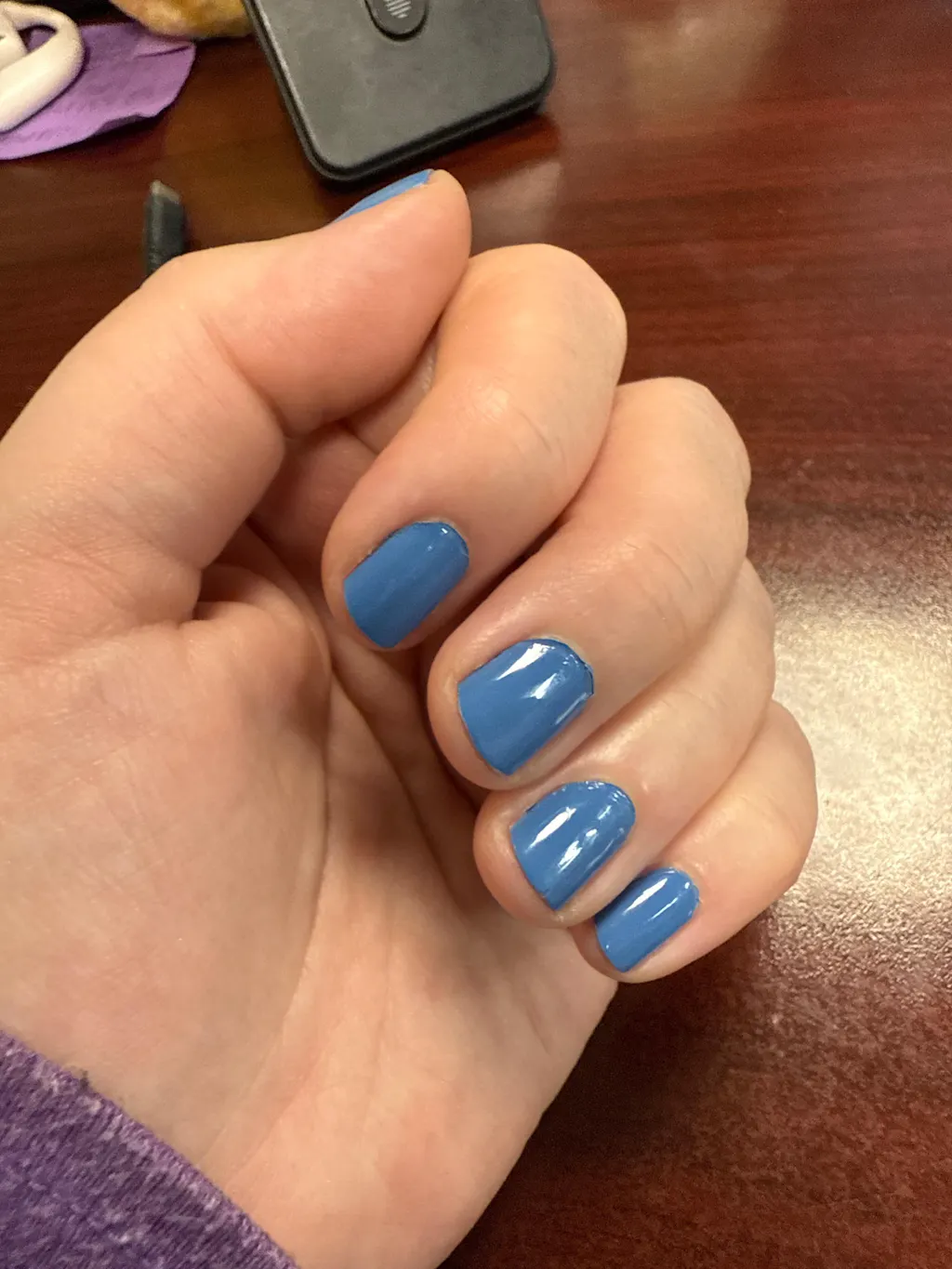 A blue jewel polish with a creme finish.
