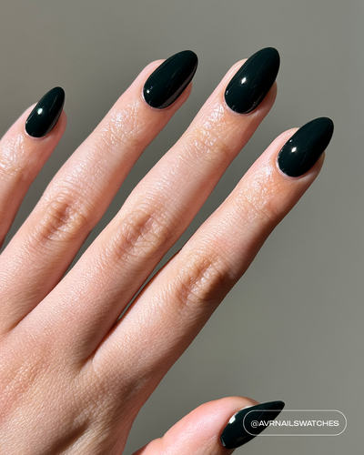 A deep black green polish with a creme finish.