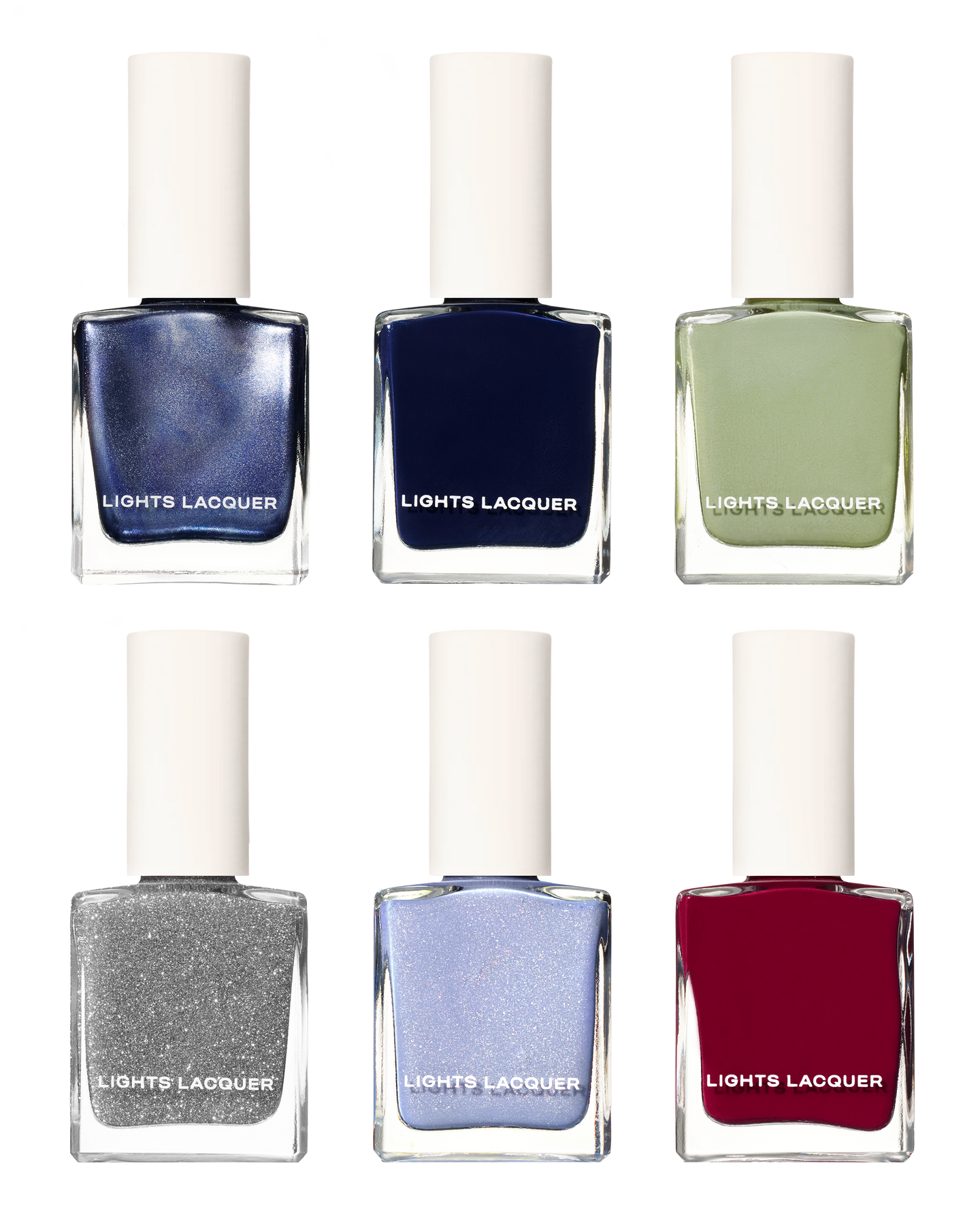 The Are We Cool? nail polish lineup — all six frostbitten shades in one cool set.