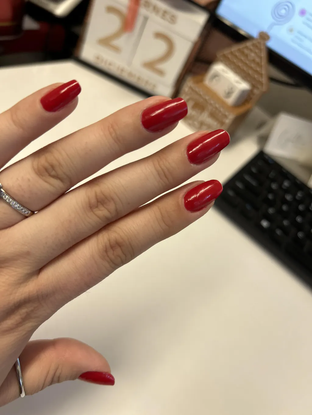 A true red polish with a creme finish.
