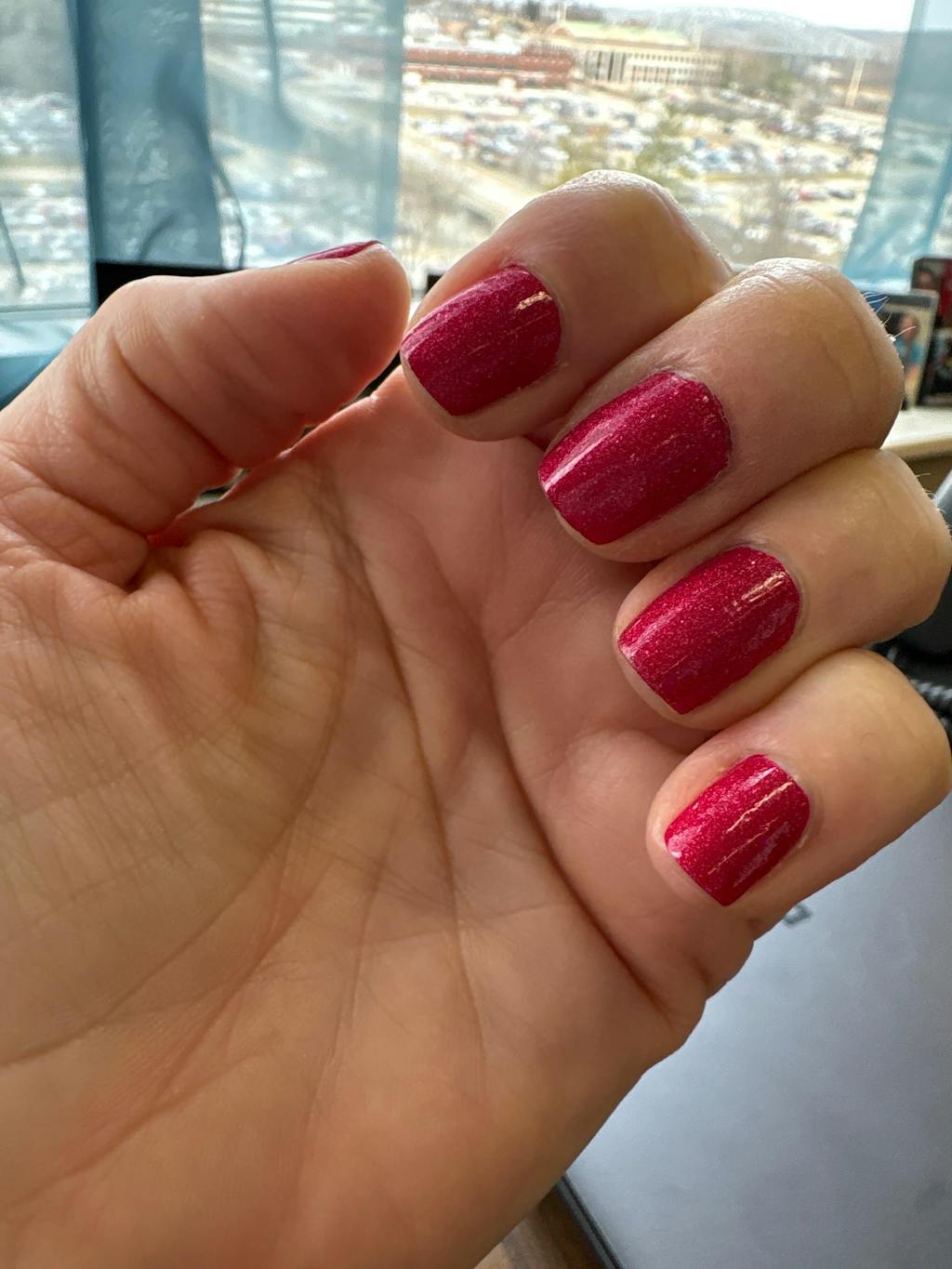A raspberry red polish with a holo finish.