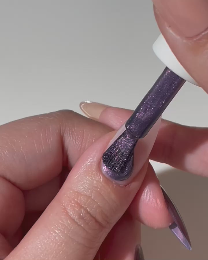A deep purple polish with lavender pigment and a magnetic finish.