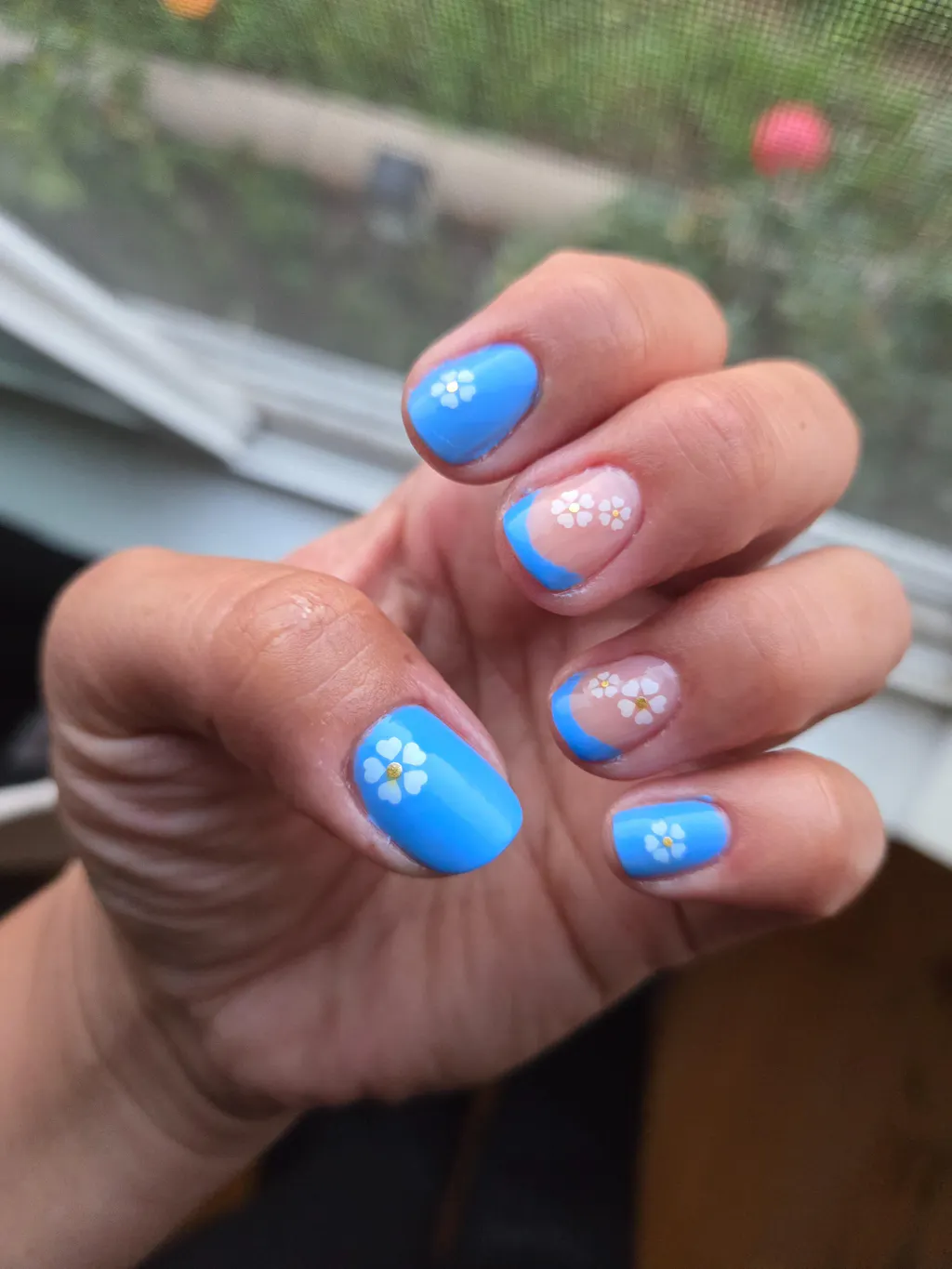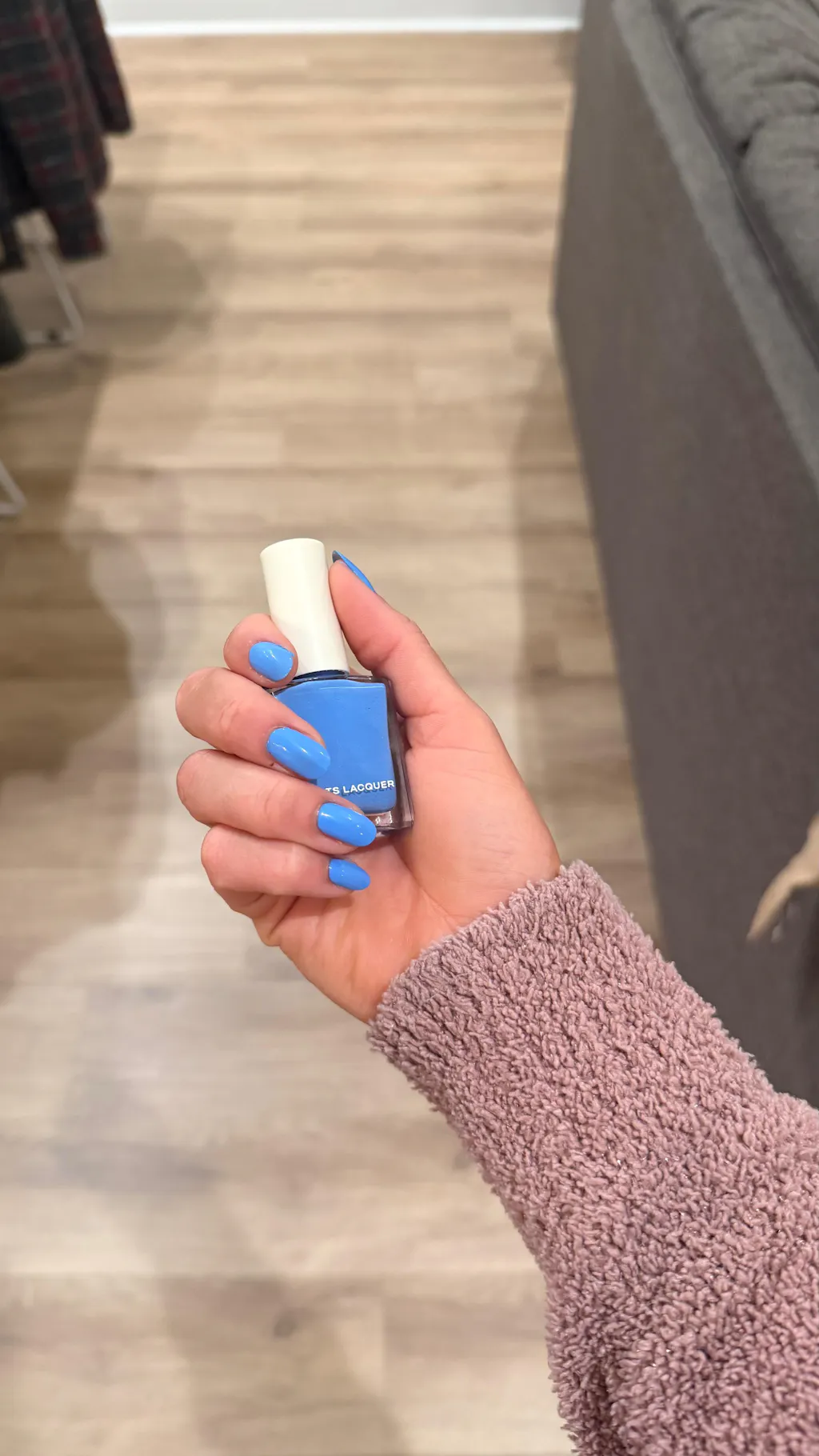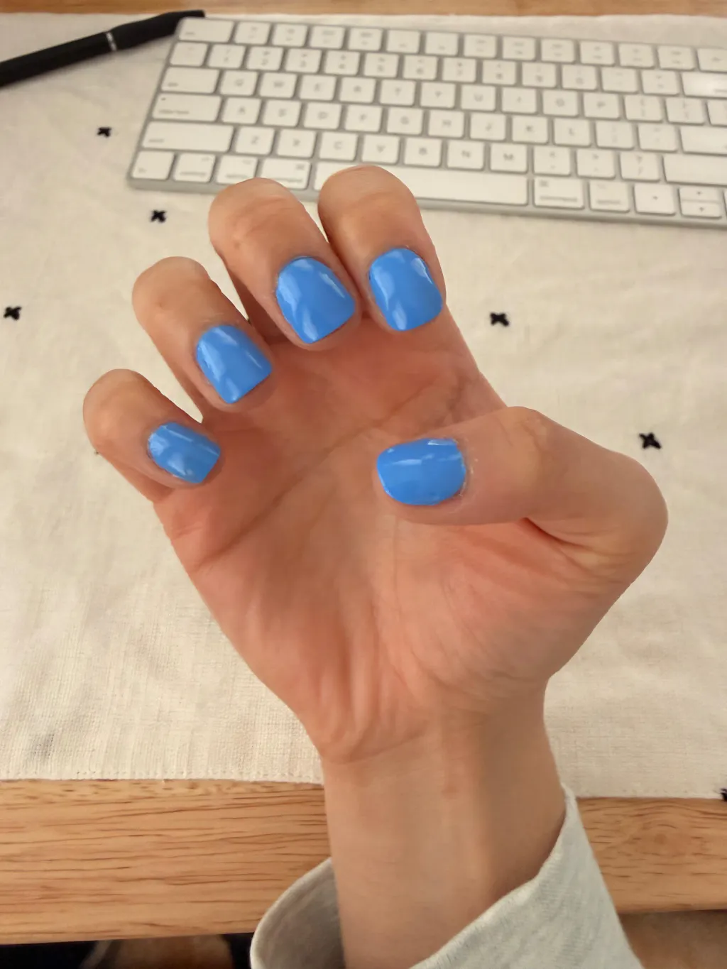 A bright cornflower blue nail polish with a creme finish.