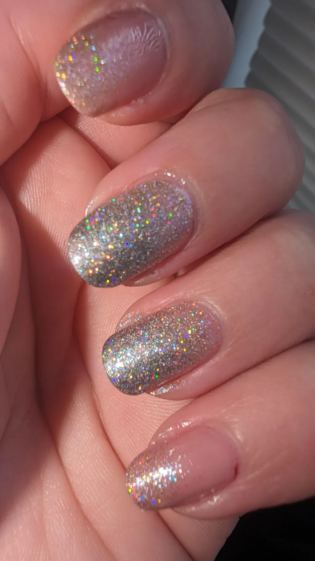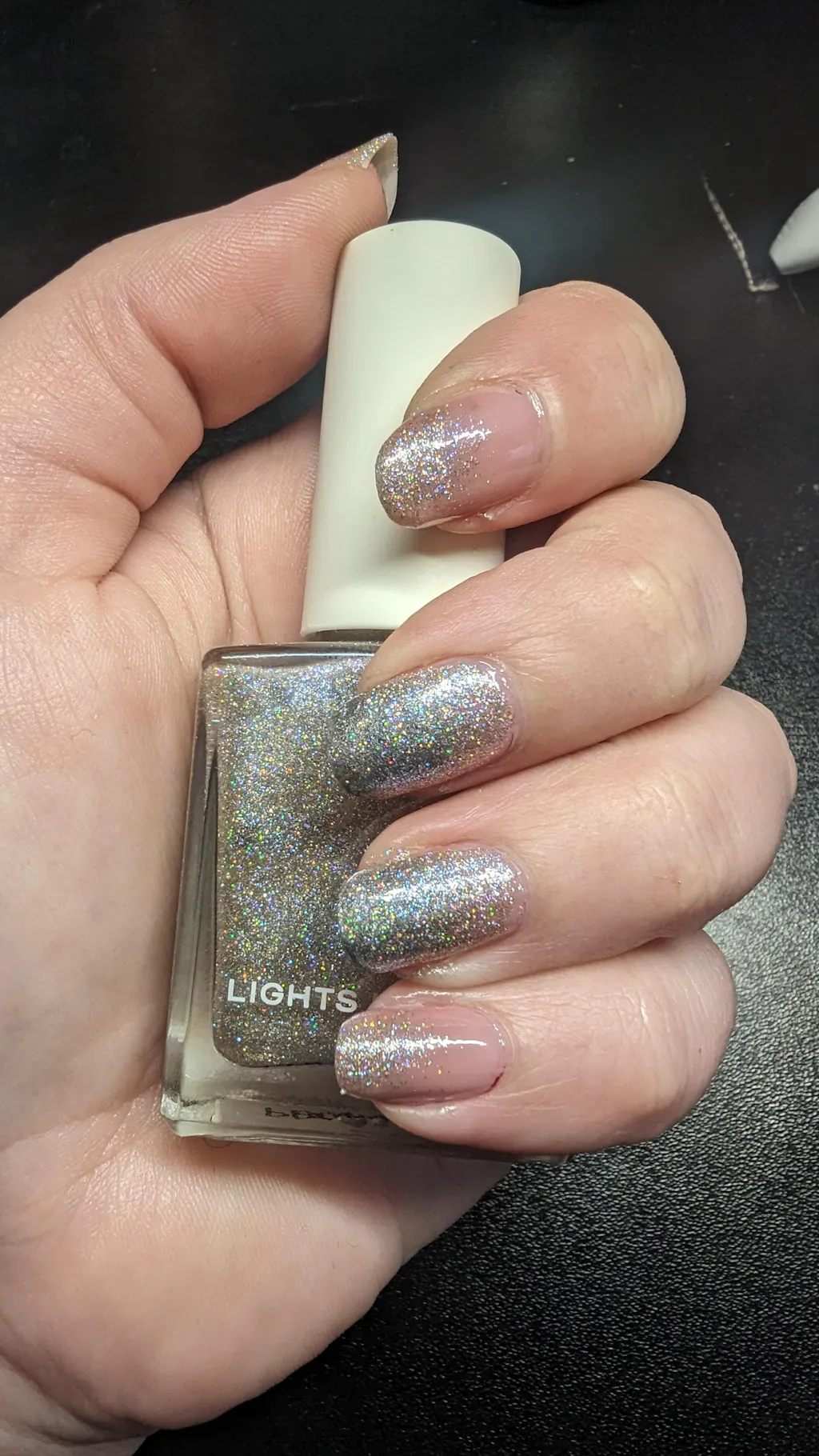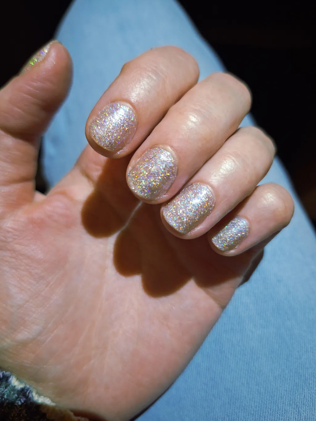 Holo: A holo nail polish has a multidimensional rainbow finish. Holo polishes are known for their unique ability to reflect and refract light, producing a captivating and prismatic appearance. Some holo polishes may require more coats to achieve the desired opacity or color intensity.