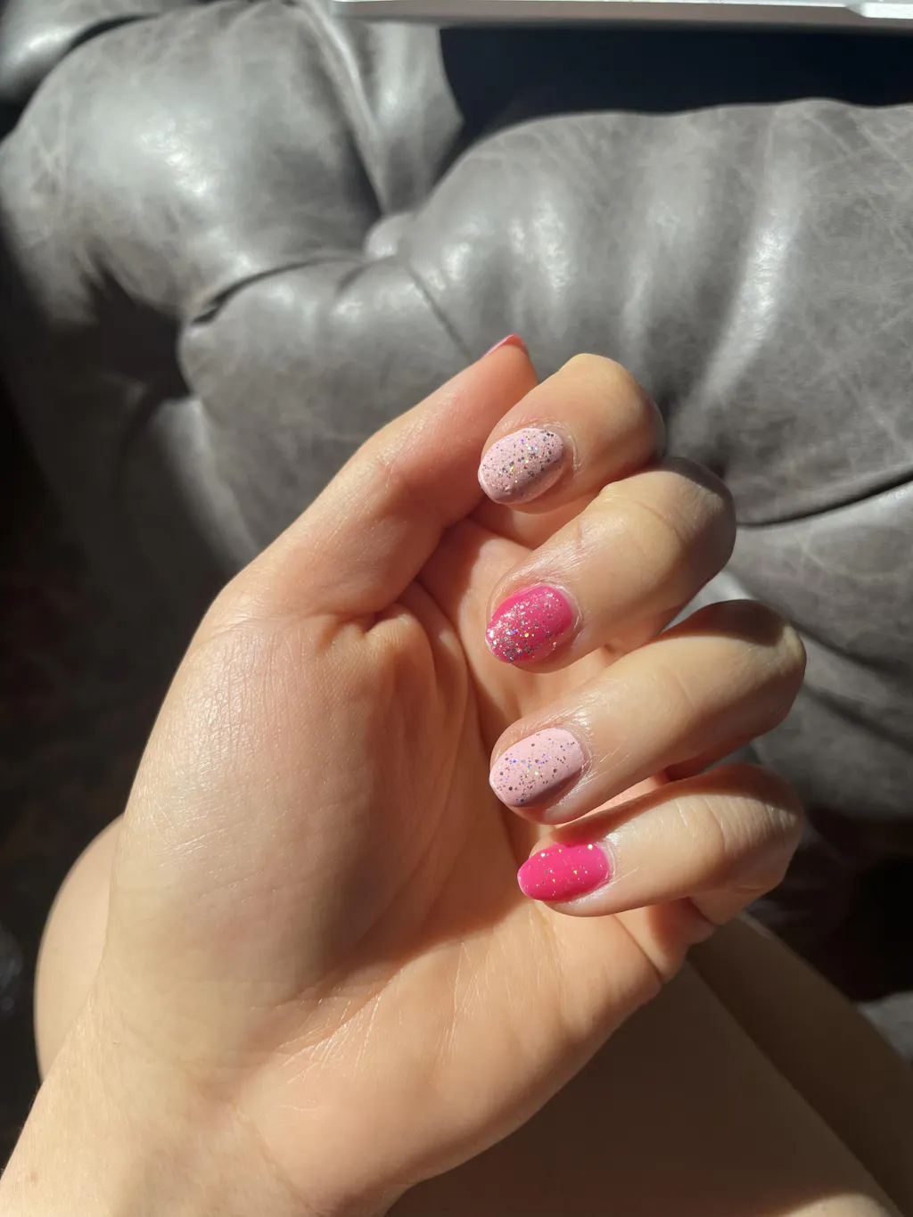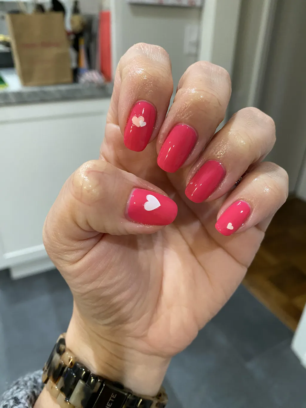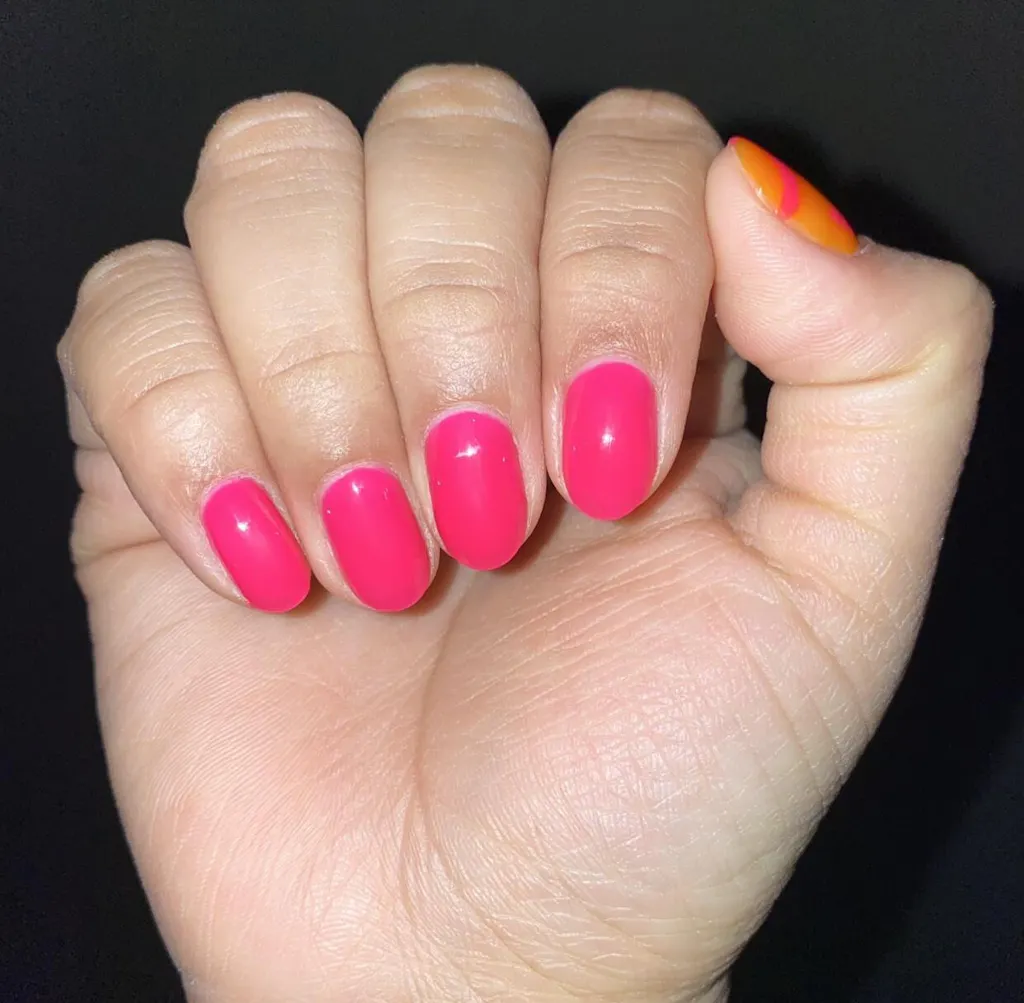 An electric flamingo pink polish with a creme finish that dries matte.