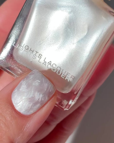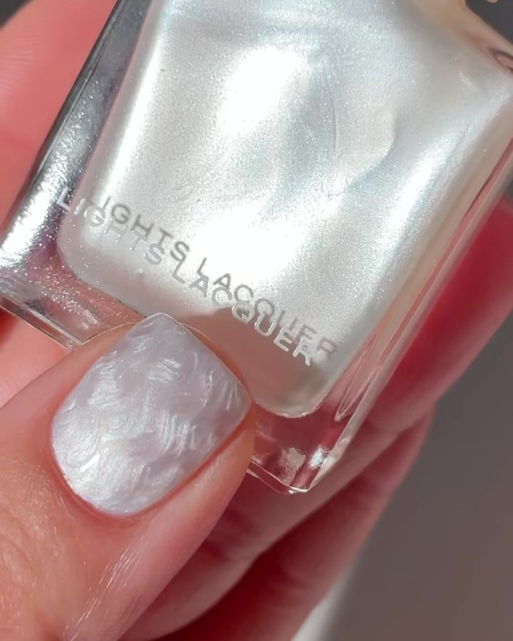 A pearly white polish with a metallic finish.