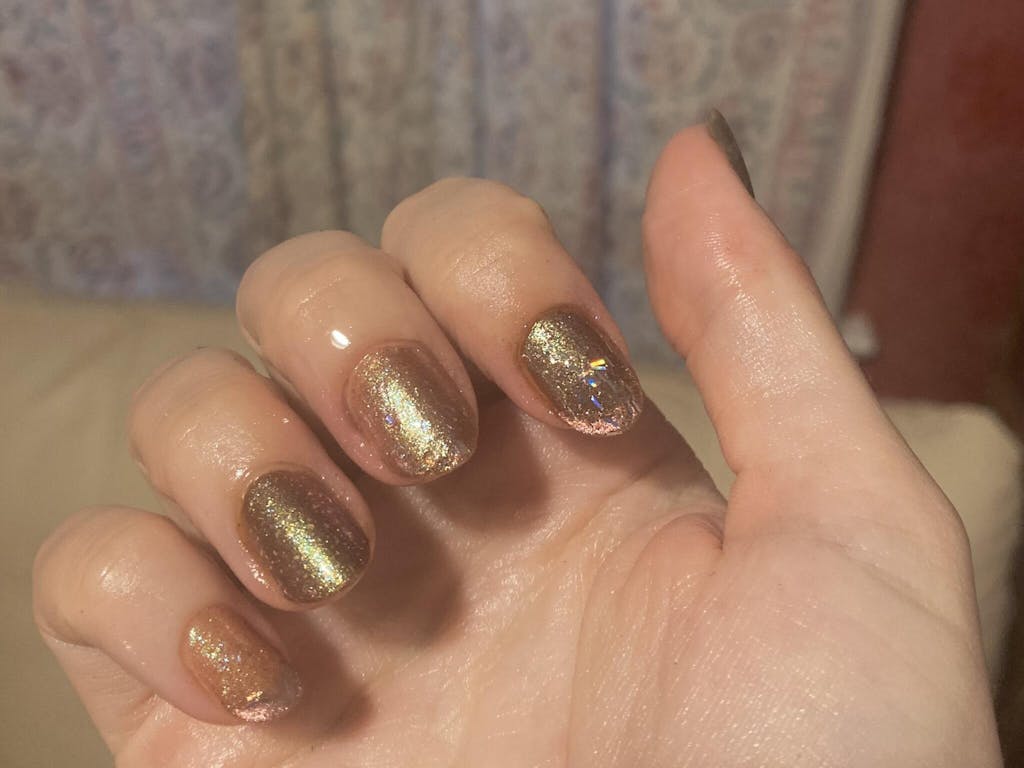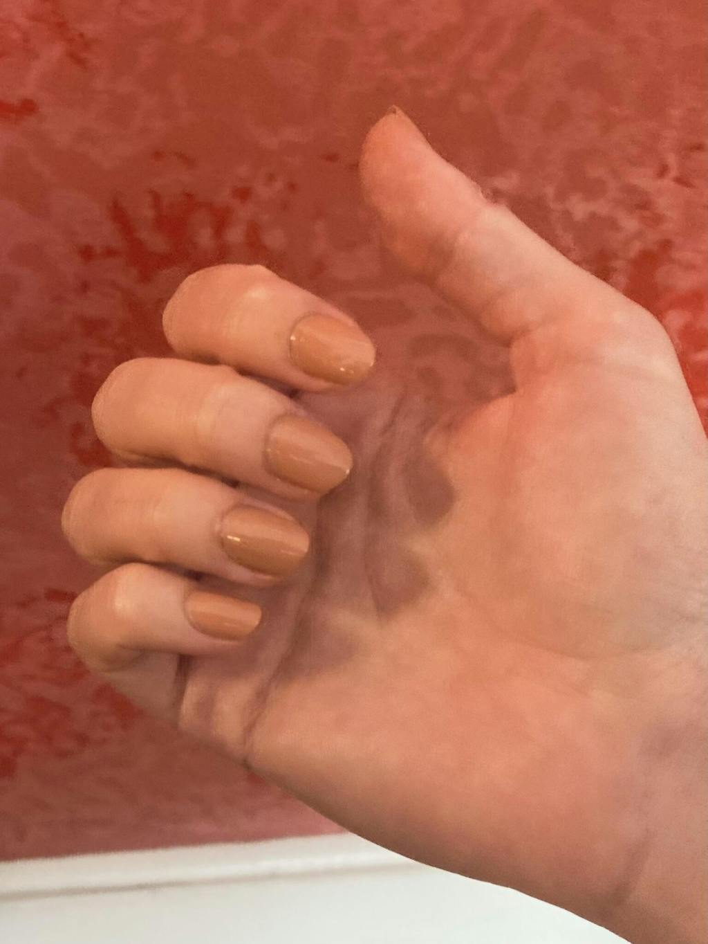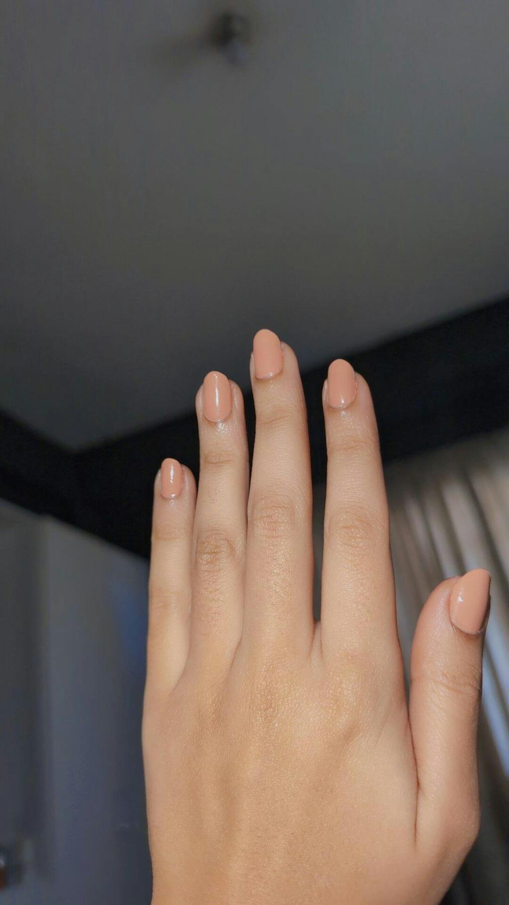 A pink honey nude polish with a creme finish.