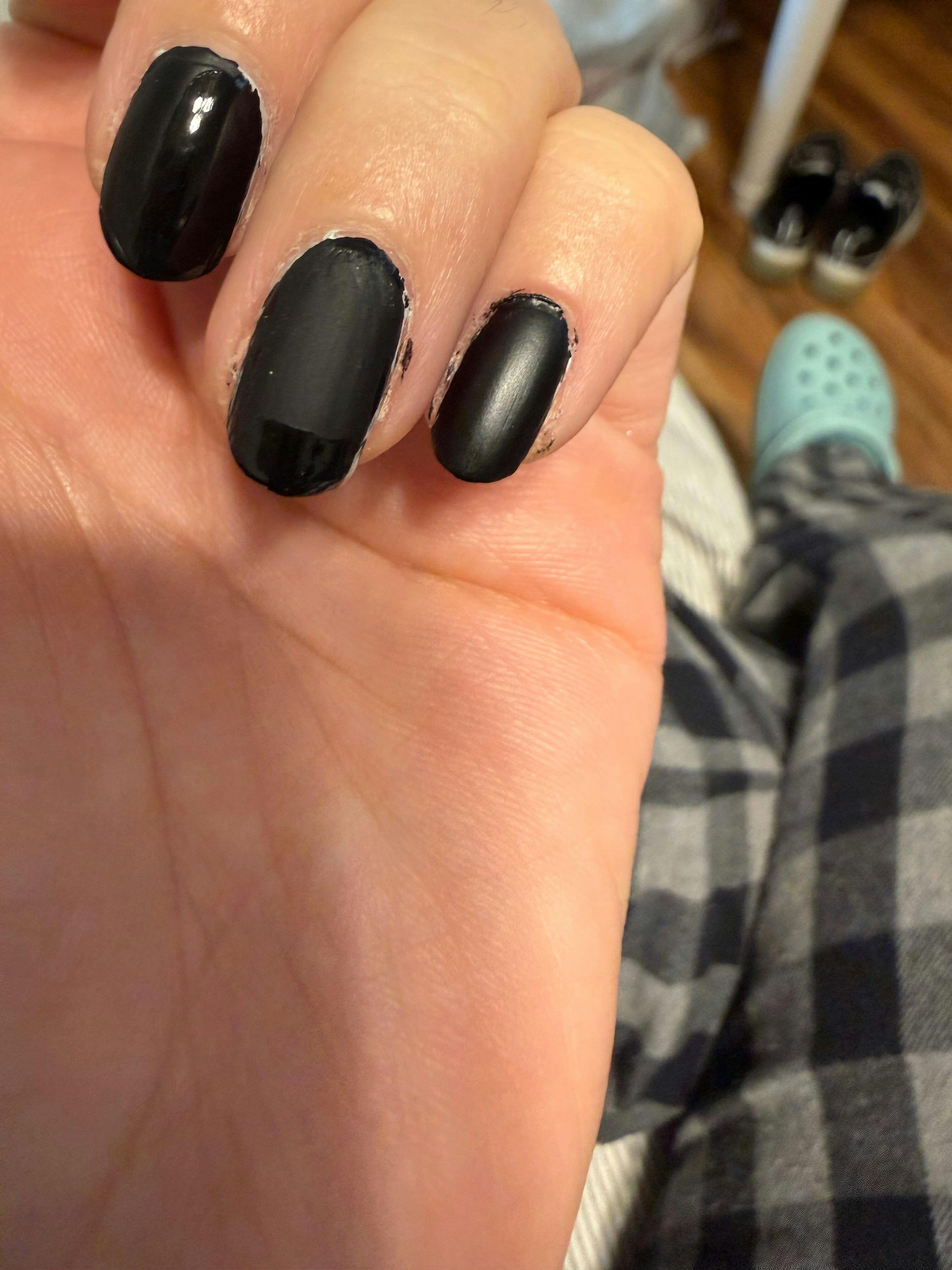 This mattifying formula transforms your high shine glossy polish into a matte / satin finish.