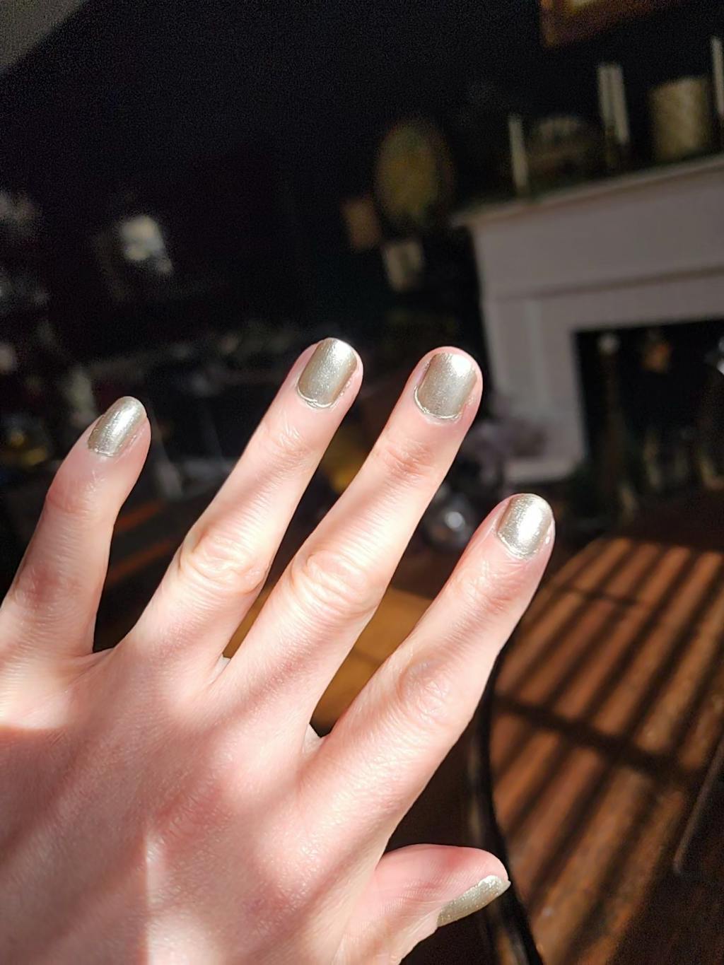 A champagne silver polish with a fine silver shimmer and magnetic finish.