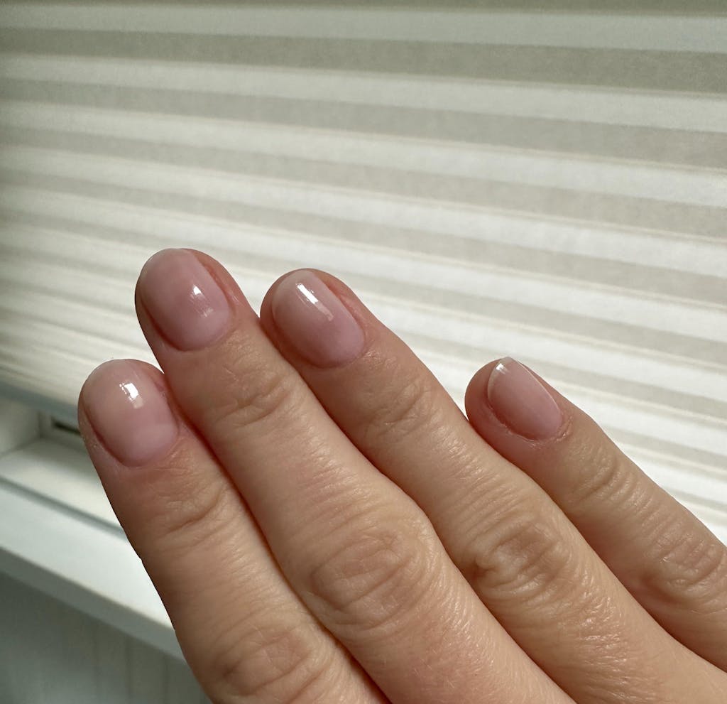 A baby pink nail polish with a crelly finish.