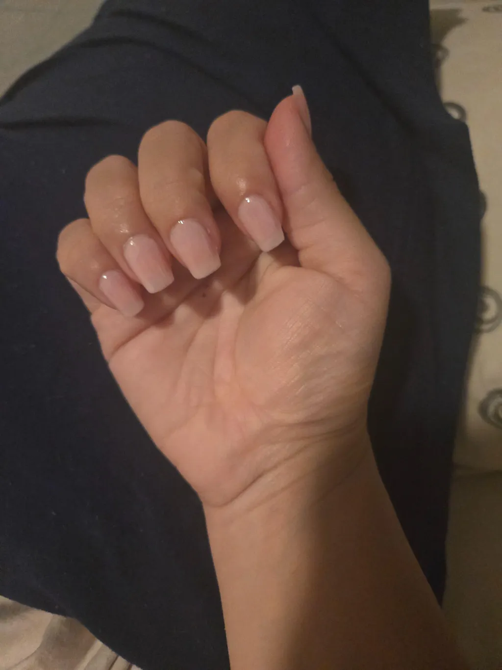 A baby pink nail polish with a crelly finish.