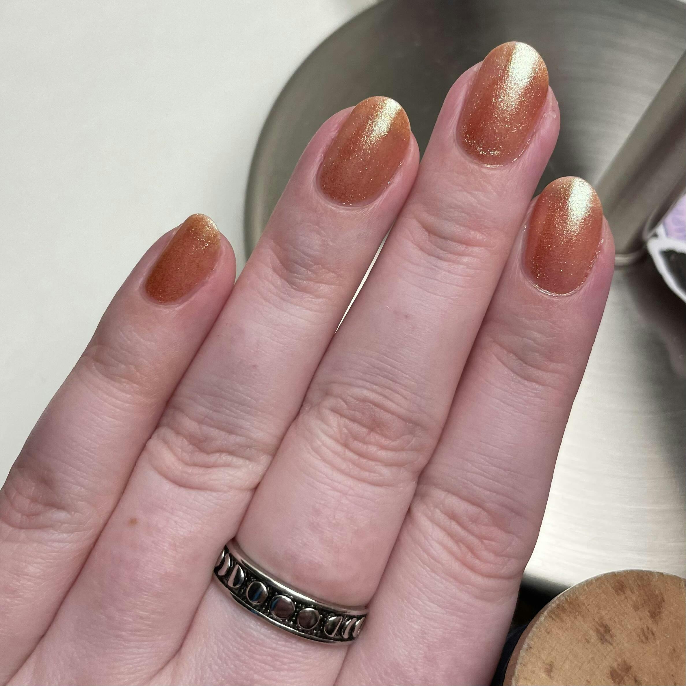 Butyl Acetate, Ethyl Acetate, Nitrocellulose, Acetyl Tributyl Citrate, Adipic Acid / Neopentyl Glycol / Trimellitic Anhydride Copolymer, Isopropyl Alcohol,Synthetic Fluorphlogopite [44%] & Silica [32.5%] & Iron Oxide (CI 77491) [17.5%] & Titanium Dioxide (CI 77891) [4.0%] & Tin Oxide [2.0%] (77491, 77891), Synthetic Fluorphlogopite [47.5%] & Silica [29%] & Iron Oxide (CI 77491) [17.5%] & Titanium Dioxide (CI 77891) [4.0%] & Tin Oxide [2.0%] (77491,77891),Stearalkonium Hectorite,Adipic Acid/Fumaric Acid/ Tricyclodecane Dimethanol Copolymer,Citric Acid